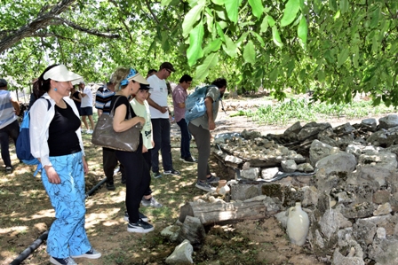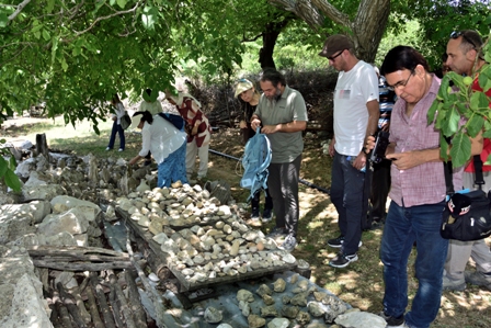 Düzenlenen araştırma ve inceleme gezisi için Mut BİLSEM’in davetlisi olarak ilçeye gelen üniversite araştırma ekibi, ilk gününde, tarihi Taşhan’da düzenlenen kahvaltıyla ağırlandı. Araştırma gezisi öncesi düzenlenen kahvaltı etkinliğine, Mut İlçe Milli Eğitim Müdürü Erdal Dölek ve ailesi de katıldı. Taşhan’da yapılan kahvaltı sonrası ilk olarak Çukurbağ Mahallesi’ne gidildi. Burada Mahalle Muhtarı Erkan Uysal ve fosil koleksiyoneri İsmet Yıldırım tarafından karşılanan araştırma ekibi, koleksiyoner İsmet Yıldırım tarafından oluşturulan fosil sergisini inceledi. Sergilenen fosilleri inceleyen ve İsmet Yıldırım’dan bilgi alan ekip, özellikle deniz canlılarından oluşan fosilleri fotoğraflayarak kayıt altına aldı.