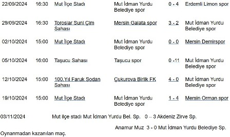 8 maçta 2 galibiyet, 1 beraberlik ve 5 mağlubiyet alan Mut İdman Yurdu Belediye Spor, sporseverlerin spor zevkini bitirdi.